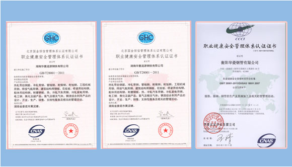 華菱湘鋼、華菱漣鋼、華菱衡鋼職業(yè)健康安全管理認(rèn)證證書
